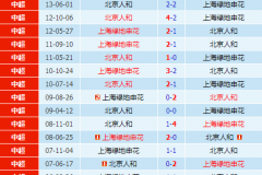 上海绿地申花vs北京人和历史战绩一览