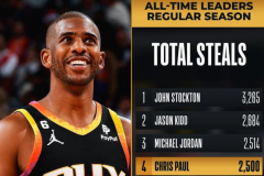保罗生涯总抢断数超乔丹 生涯结束前有望超越基德升至第二