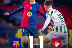 西甲巴塞罗那1-1皇家贝蒂斯 巴萨仍领跑积分榜