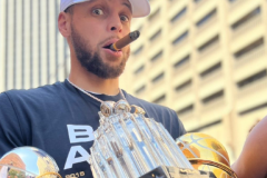 库里抱3座MVP奖杯参加冠军游行 冠军戒指当项链戴