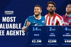 最新世界足坛自由球员身价排名:特谢拉1200万欧居首 科斯塔第2