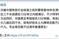 美团CEO王兴吐槽国足事件升级 专业球员12分钟跑比不过清华普通男生?
