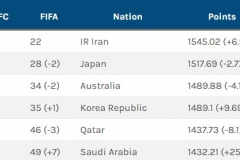 世预赛亚洲区12强最新世界排名:国足第75位阿曼77 澳洲第34