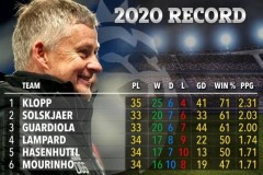 2020年英超主帅胜率排名:索帅仅次克洛普 穆帅排第六