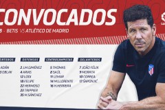 北京时间12月22日晚23:00,马竞将客场挑战皇家贝蒂斯,目前马竞公布了本轮联赛的大名单。
