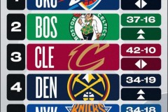 NBA东西部最新排名 骑士和雷霆稳居各自分区第一