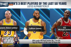 今年夏天Nick Wright评选了自己心目中的历史50大球星,最终他把乔丹排在了第三的位置,前二是贾巴尔和詹姆斯,因此也引起了很大的争议。
