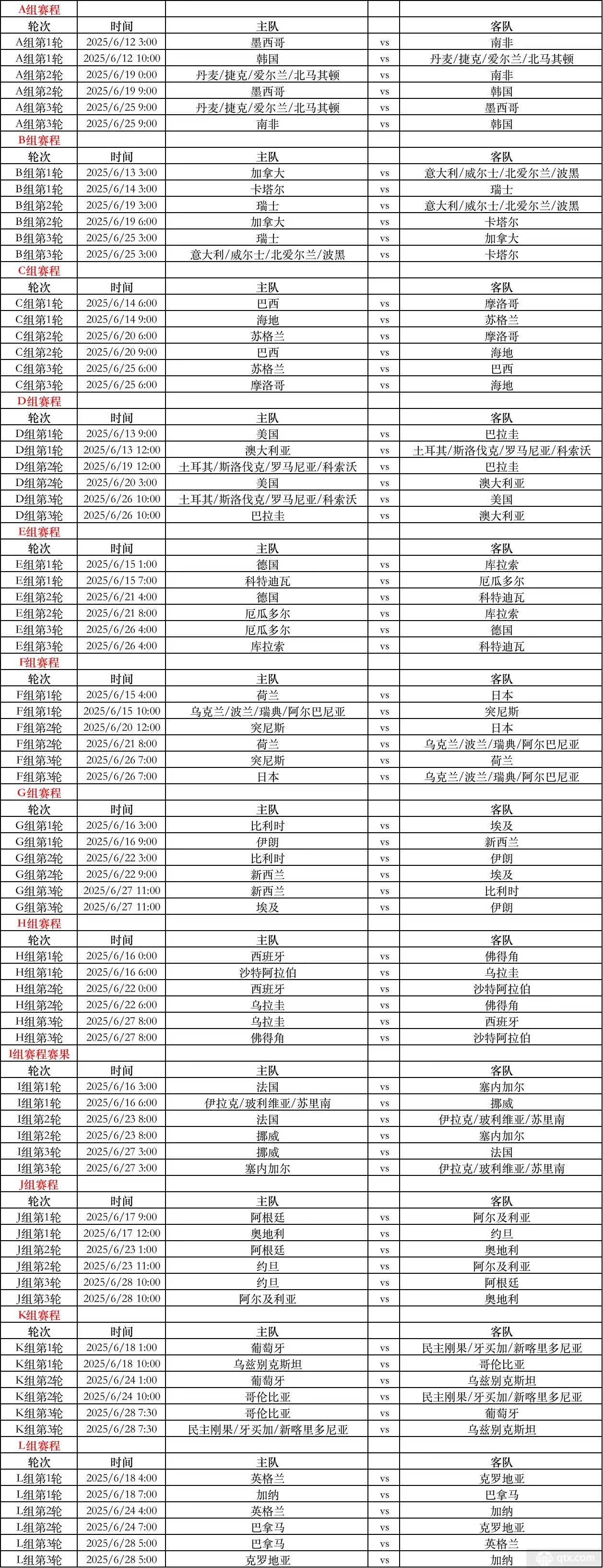 2026年美加墨世界杯将会在今年夏天展开较量,目前本届世界杯的赛程以及分组都已经确定,根据赛程的安排48支球队将会在北京时间6月12日至7月20日进行104场精彩的较量,最终决出本届世界杯的冠军。本届